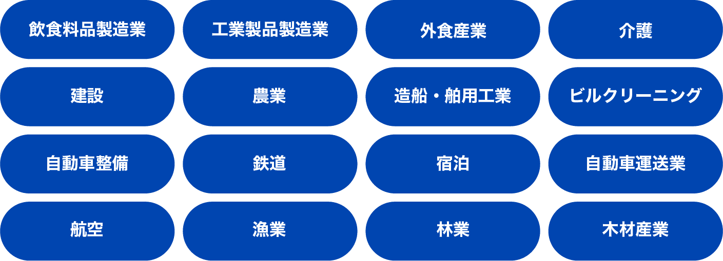 特定技能産業分野16分野一覧